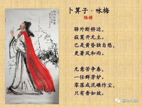 品读了陆游的《卜算子·咏梅》词,反用陆游词的原本的寓意而写了这首词。