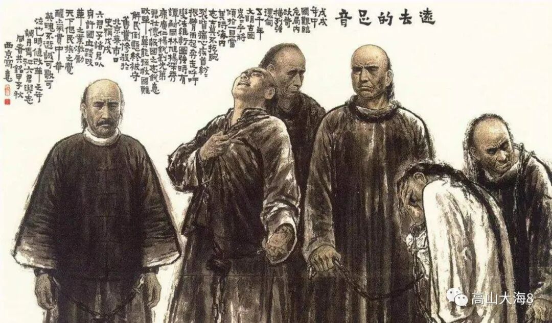 “去留肝胆两昆仑”,对于去留问题,谭嗣同有自己的定见。在政变的第二天,谭氏待捕不至,遂往日本使馆见梁启超,劝其东游日本。他说:“不有行者,无以图将来;不有死者,无以酬圣主。今南海(康有为)之生死未可卜,程婴、杵臼、月照、西乡,吾与足下分任之。”他出于“道”(变法大业、国家利益),也出于“义”(君臣之义、同志之义),甘愿效法《赵氏孤儿》中的公孙杵臼和日本德川幕府末期月照和尚的好友西乡的行节,以个人的牺牲来成全心目中的神圣事业,以自己的挺身赴难来酬报光绪皇帝的知遇之恩。同时,他也期望自己的一腔热血能够惊觉苟且偷安的芸芸众生,激发起变法图强的革命狂澜。在他看来,这伟大的身后事业,就全靠出奔在逃的康、梁们的推动和领导。基于这种认知,他对分任去留两职的同仁同志,给予了崇高的肯定性评价:去者,留者。路途虽殊,目标则同,价值同高,正像昆仑山的两座奇峰一样,比肩并秀,各领千秋风骚。