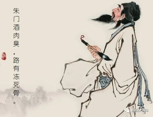 诗中不宜再尖锐地说下去,所以转入平铺。“煖客”以下四句两联,十字作对,称之为隔句对或者扇面对,调子相当地纡缓。因意味太严重了,不能不借藻色音声的曼妙渲染一番,稍稍冲淡。其实,纡缓中又暗蓄进逼之势。貂鼠裘,驼蹄羹,霜橙香橘,各种珍品尽情享受,酒肉凡品,不须爱惜。在这里,本来文势稍宽平了一点儿,诗人又紧接着大声疾呼:“朱门酒肉臭,路有冻死骨。”一句也不肯放松,一笔也不肯落平。这是传诵千古的名句。表面上一往高歌,暗地里却结上启下,令读者不觉,《杜诗镜铨》里评价说“拍到路上无痕”,讲得很对。骊山宫装点得像仙界一般,而宫门之外即有路倒尸。咫尺之间,荣枯差别这样大,那也没有什么可说的了。诗人不能再说,亦无须再说了。在这儿打住,是很恰当的。