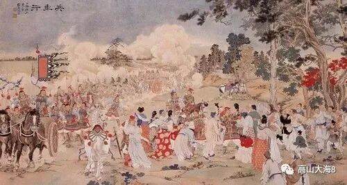 这一段,记叙、描写、议论并用。首六句叙上路情形,在初冬十月、十一月之交,半夜动身,清早过骊山,玄宗和贵妃正在华清宫。“蚩尤”两句的旧注多有错误。蚩尤曾经作雾,即用作“雾”的代语,下面说“塞寒空”即是雾。在这里,只见雾塞寒空,雾重故地滑。温泉蒸气郁勃,羽林军校往来如织。骊宫冬晓,气象万千。寥寥数笔,写出了真正的华清宫。“君臣留欢娱,乐动殷胶葛”两句亦即白居易《长恨歌》所说的“骊宫高处入青云,仙乐风飘处处闻”。说“君臣留欢娱”,轻轻点过,却把唐玄宗一起拉到浑水里去。上文所谓“尧舜之君”,不过是诗人说说好听,遮遮世人眼罢了。
