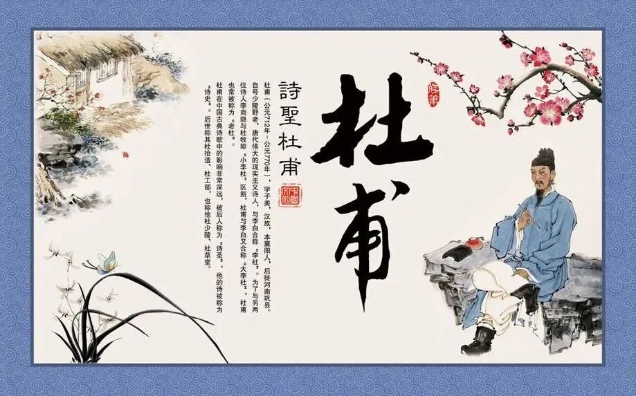 杜甫(712-770),字子美,尝自称少陵野老。举进士不第,曾任检校工部员外郎,故世称杜工部。是唐代最伟大的现实主义诗人,宋以后被尊为“诗圣”,与李白并称“李杜”。其诗大胆揭露当时社会矛盾,对穷苦人民寄予深切同情,内容深刻。许多优秀作品,显示了唐代由盛转衰的历史过程,因被称为“诗史”。在艺术上,善于运用各种诗歌形式,尤长于律诗;风格多样,而以沉郁为主;语言精炼,具有高度的表达能力。存诗1400多首,有《杜工部集》。
