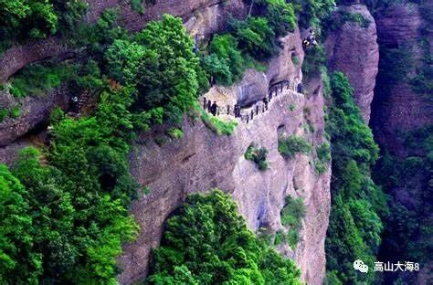 剑阁:剑门栈道下有木板作行道,上有搭篷蔽雨,远观栈道,宛若凌空廊阁,这种栈道也称阁道;而剑门之阁道,“飞阁通衢,故谓之剑阁也。”