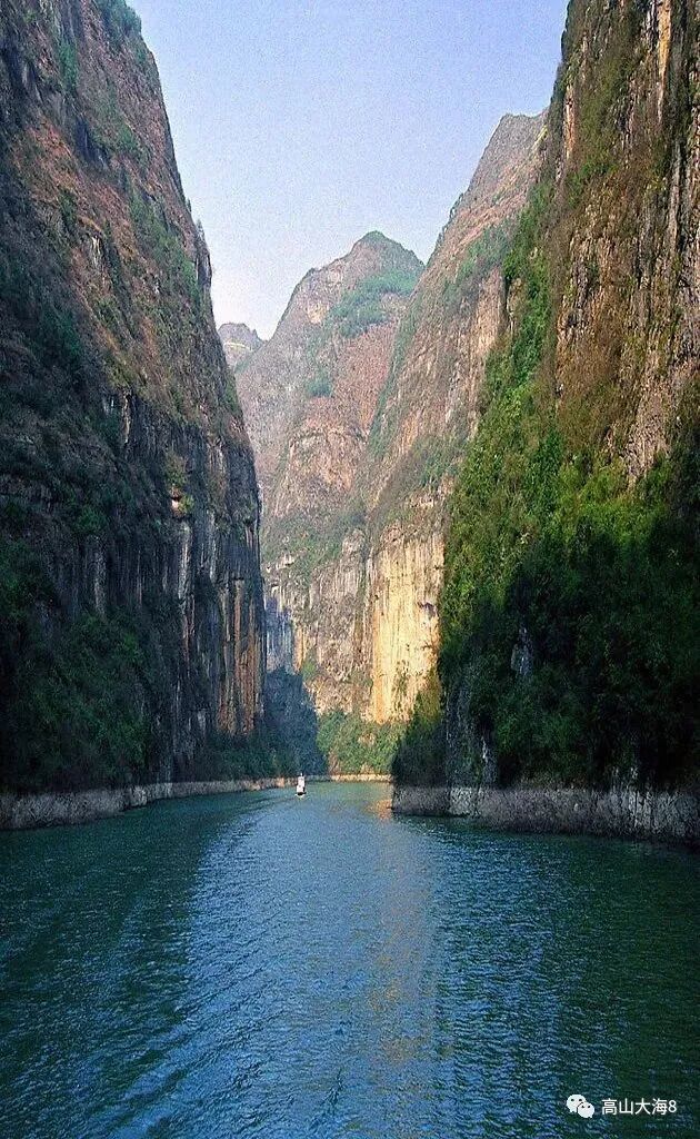 自三峡七百里中,两岸连山,略无阙处。重岩叠嶂,隐天蔽日,自非亭午夜分,不见曦月。(阙 通:缺;重岩一作:重峦)