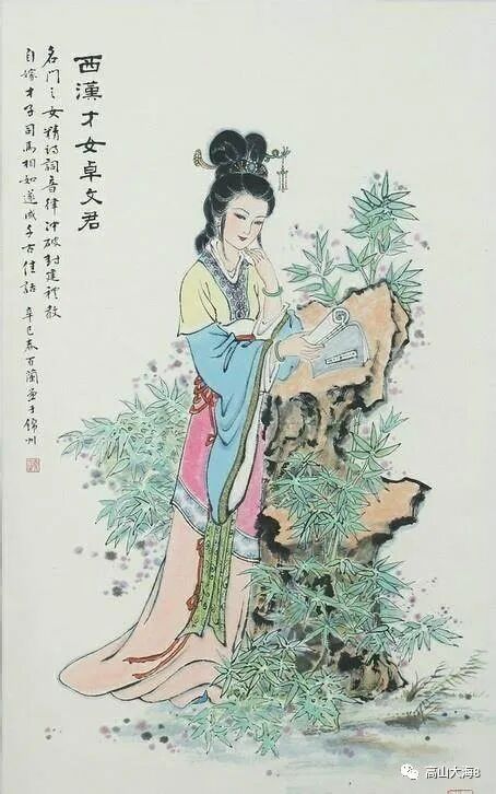 卓文君为蜀郡临邛的冶铁巨商卓王孙之女,姿色娇美,精通音律,善弹琴,有文名。