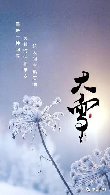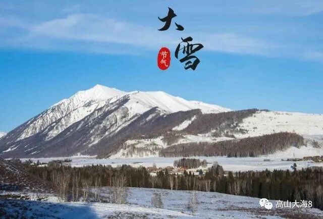 这时我国大部分地区的最低温度都降到了0℃或以下。往往在强冷空气前沿冷暖空气交锋的地区,会降大雪,甚至暴雪。可见,大雪节气是表示这一时期,降大雪的起始时间和雪量程度,它和小雪、雨水、谷雨等节气一样,都是直接反映降水的节气。
