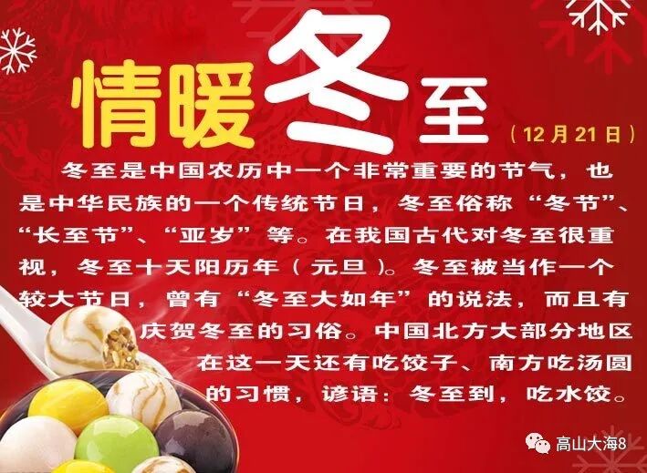 冬至又被称为“小年”,一是说明年关将近,余日不多;二是表示冬至的重要性。