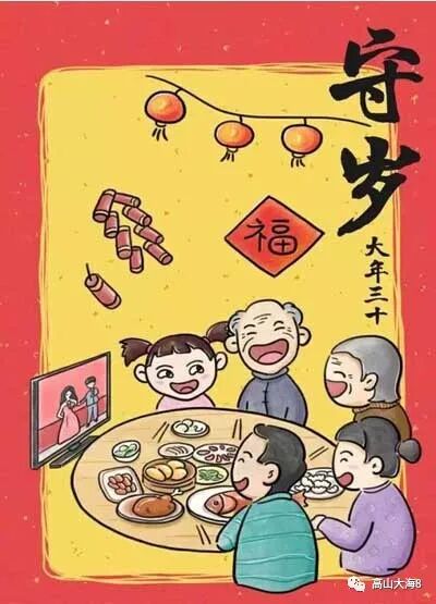 除夕守岁是最重要的年俗活动之一,守岁之俗由来已久。最早记载见于西晋周处的《风土志》:除夕之夜,各相与赠送,称为“馈岁”;酒食相邀,称为“别岁”;长幼聚饮,祝颂完备,称为“分岁”;大家终夜不眠,以待天明,称曰“守岁”。自汉代以来,新旧年交替的时刻一般为夜半时分。