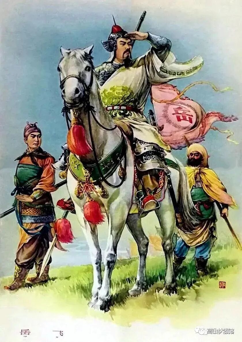 24、1963年出版的《岳飞》年画,作者是俞微波,骑在白马上的岳飞,英姿勃勃,双目正往前方探望。