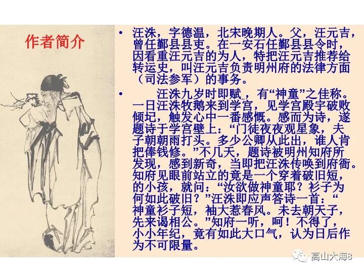 汪洙出身于县吏家庭,自幼聪明好学,九岁便能写诗,有神童之称。