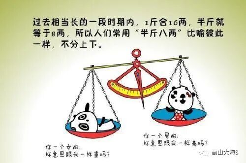 原来我们祖先使用的秤是十六两为一斤,所以半斤和八两就是一样的。