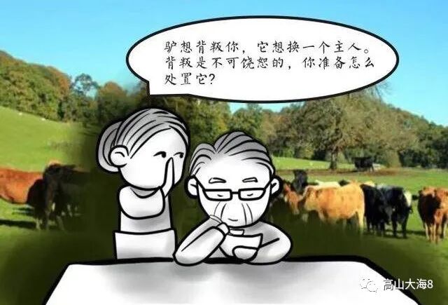 得到猪的报告,晚饭桌上,主妇对主人说:“驴想背叛你,它想换一个主人。背叛是不可饶恕的,你准备怎么处置它?”