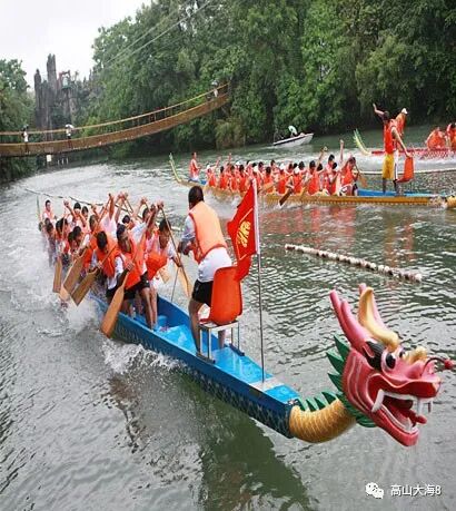 龙舟节赛龙舟是端午节的一项重要活动,在中国南方十分流行,尤其是广东地区,广东地区称之为扒龙船。它最早当是古越族人祭水神或龙神的一种祭祀活动,其起源有可能始于原始社会。