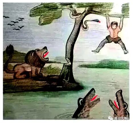 男人不知道下面有蛇,女人不知道上面的男人被巨石压着。