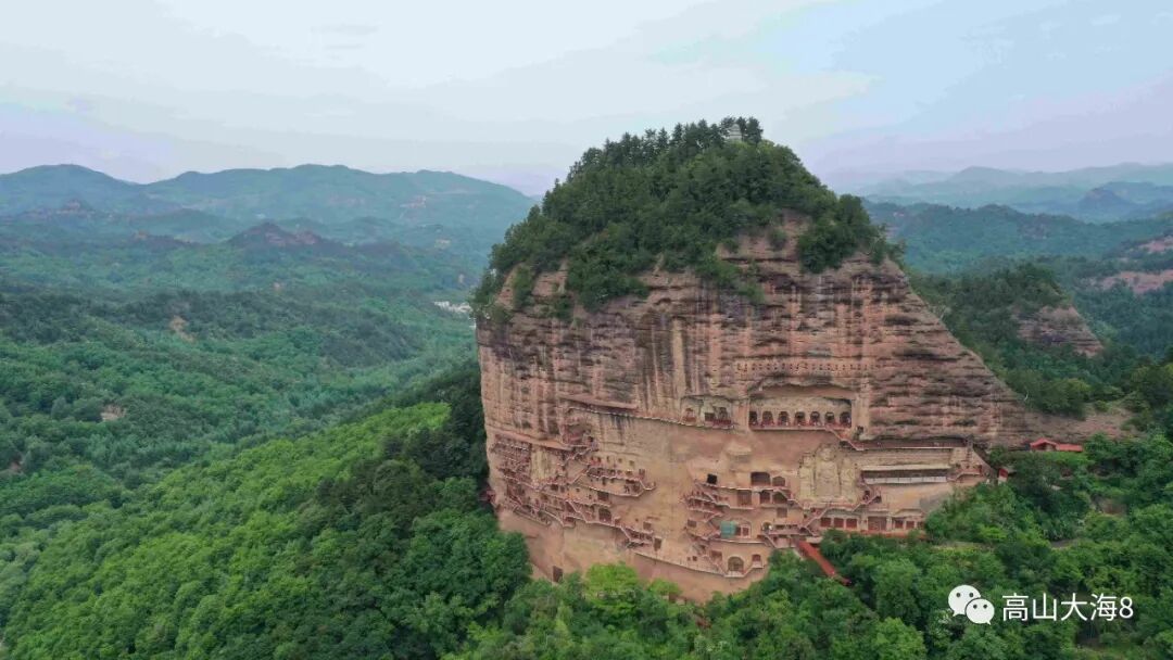 麦积山石窟,中国四大石窟之一,石窟独以泥塑冠绝于世,被誉为东方雕塑陈列馆,在国内石窟有很多,比如,以壁画著称的敦煌石窟,克孜尔千佛洞等,以石雕而闻名的云冈石窟,龙门石窟等,而对于麦积山石窟来说,泥塑是石窟的精华,但独特的建筑,也是麦积山的独有之处,西南-南-东南的三侧峭壁上,洞窟之间有层层相迭的栈道相连,因形似麦垛而得名,麦积山。