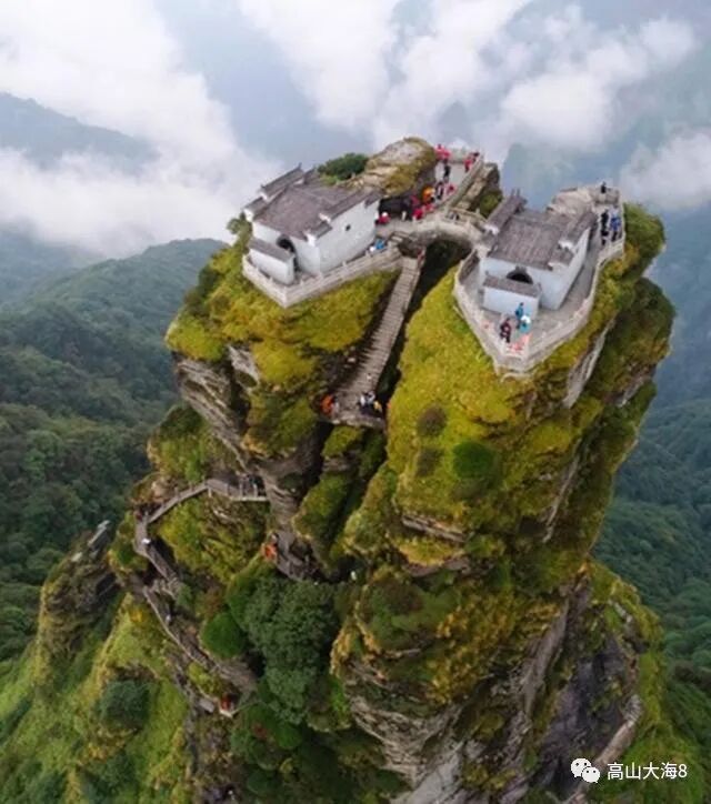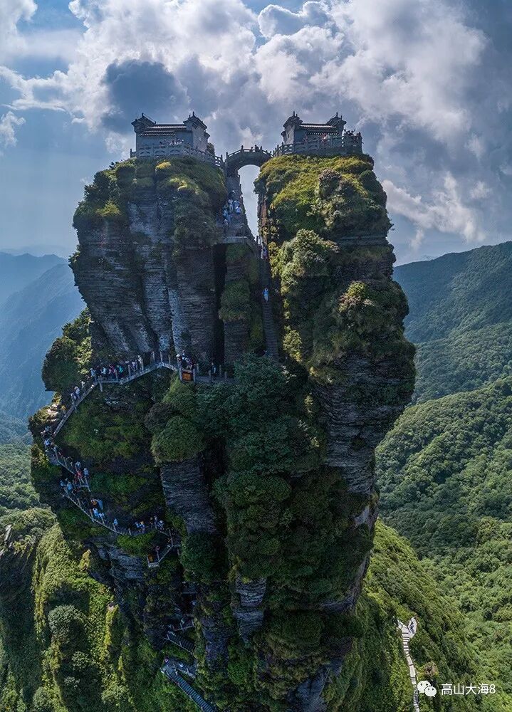 梵净山,中国十大避暑名山之一,有着天空之城的美誉,最高峰为金顶,也是武陵山脉的最高峰,金顶之下的就是万丈的深渊,登上金顶极其不易,需要借助于铁链攀爬而上,而通往金顶,并没有顺畅的大道,需要人们手脚并用攀援而上,整个过程中需要时刻保持警惕,在新金顶巅峰之上建有释迦-弥勒两殿,毕竟梵净山,也是佛教名山,香火旺盛,但游览梵净山,绝不可错过蘑菇石-老金顶-红云金顶三处景点