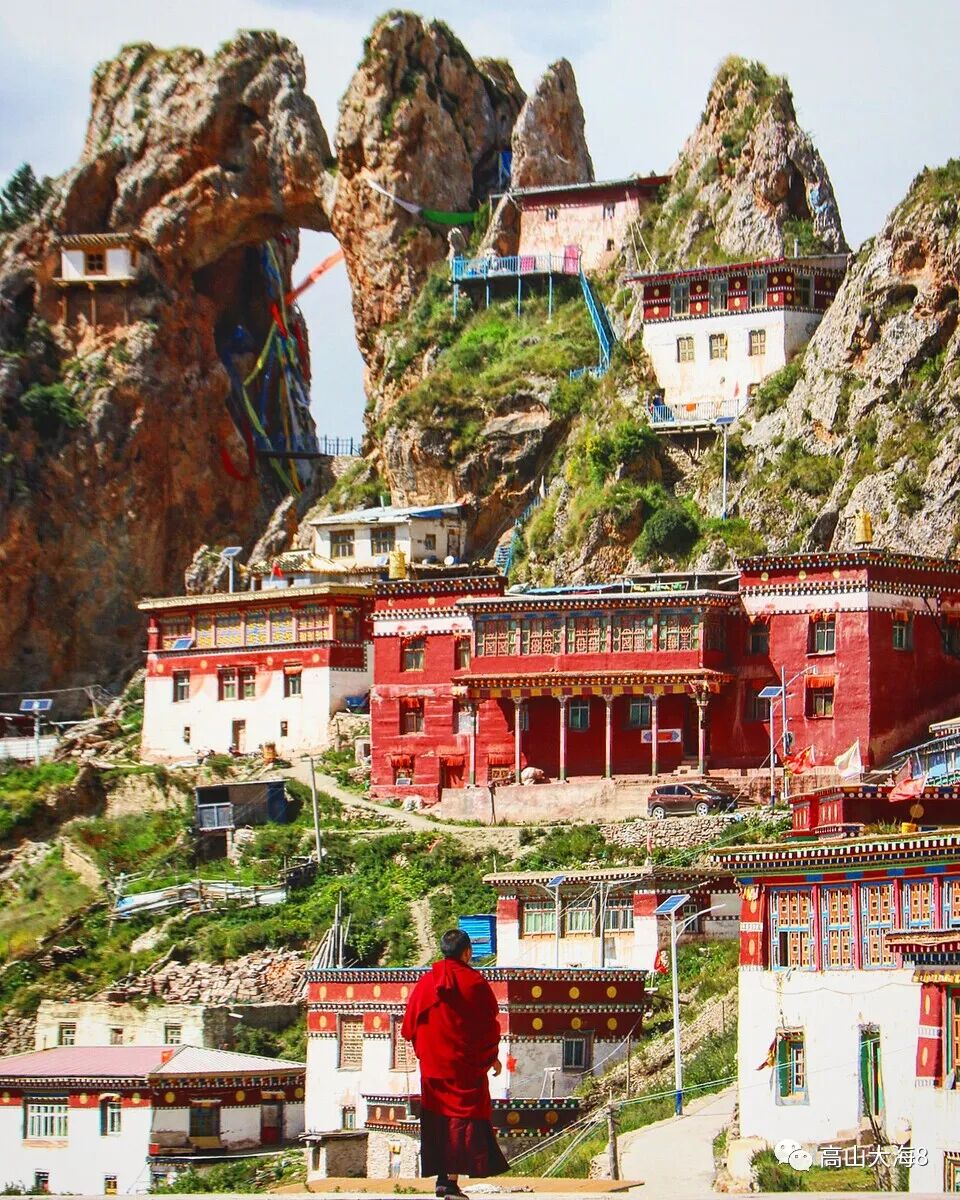 孜珠寺,是西藏海拔最高的寺院之一,也是雍仲本教最古老,最重要的寺庙之一,寺庙修建于孜珠山上,海拔4800米左右,寺庙规模不是很大,但却在山顶之上,惊叹那一栋栋房屋,怎么建在怪石嶙峋的山坡,均在地势险峻悬崖峭壁间,惊险万分,四周峡谷万丈魏巍壮丽,风景优美而独特,是自驾317国道必打卡景点之一。