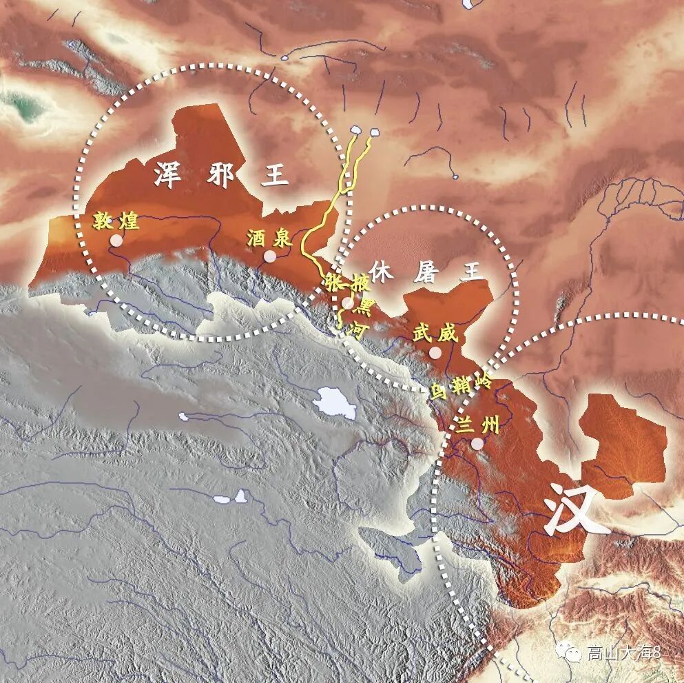西汉初期,河西走廊是匈奴人游牧的地方。通西域有功的汉武帝使者张骞第一次西去是在公元前139年,他就在这里被匈奴截住,软禁了十年,娶妻生子。他壮志未酬誓不休,终于逃离西去,完成了使命,但在归中原途中,又在这一带被匈奴截留,一年多后,才回到长安,可见,通西域必须经过河西走廊。