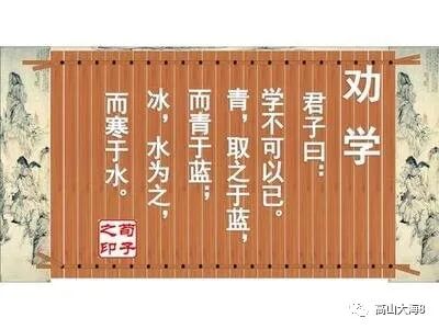 君子说:学习不可以半途而止。靛青是从蓼蓝草里提炼出来的,却比蓼蓝草还要青;冰是由水凝结而成的,却比水还要寒冷。木材直得符合拉直的墨线,用煣的工艺把它制成车轮,那么木材的弯度就合乎圆的标准了。即使又被风吹日晒而干枯了,木材也不会再挺直,是因为经过加工使它成为这样的。所以木材用墨线量过再经辅具加工就能取直,刀剑在磨刀石上磨过就能变得锋利,君子广博地学习并且每天检验反省自己,那么他就会智慧明达而且行为没有过失了。