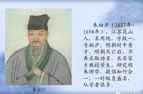三、作者介绍朱柏庐(1627-1698)原名朱用纯,字致一,自号柏庐,江苏昆山人(今昆山市),明末清初江苏昆山县人。著名理学家、教育家。其父朱集璜是明末的学者,清顺治二年(1645)守昆城抵御清军,城破,投河自尽。朱柏庐自幼致力读书曾考取秀才,志于仕途。清入关明亡遂不再求取功名,居乡教授学生并潜心程朱理学主张知行并进,一时颇负盛名。