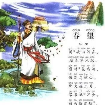 “感时花溅泪,恨别鸟惊心。”这两句一般解释是,对乱世别离的悲凉情景,花也为之落泪,鸟也为之惊心。作者触景生情,移情于物,正见好诗含蕴之丰富。并运用互文手法,可译为“感时恨别花溅泪,感时恨别鸟惊心”。