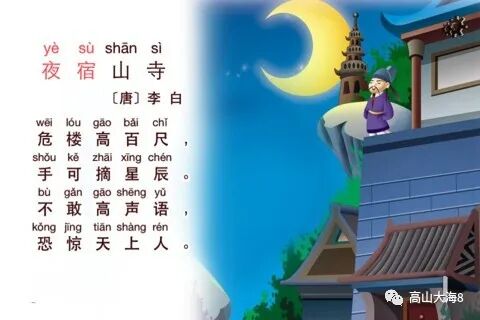 《夜宿山寺》语言朴素自然、想象奇绝,既给人以丰富的联想、又给人以身临其境之感。