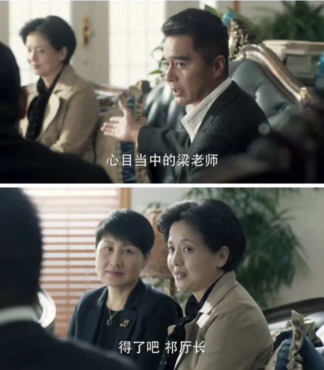 育良书记似乎是唯一一个婚姻看上去挺和谐的角色。他和妻子都是大学教授,经常以“吴老师”和“高老师”互相称呼,相敬如宾。然而俩人早就离婚不离家,各玩各的了。