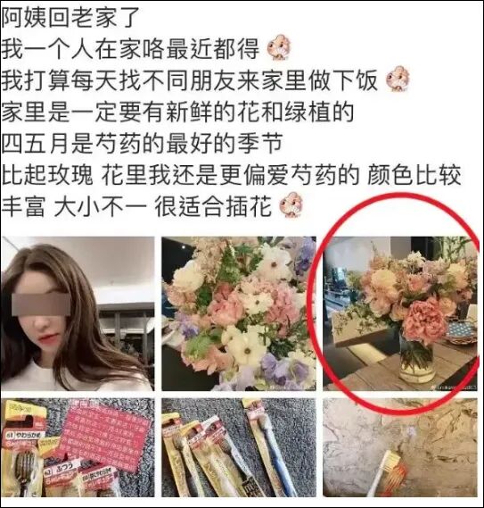 然后又晒出了九宫格照片,照片里有芍药和情侣牙刷,正当大家都在讨论两人是否同居问题时,她又在朋友圈晒出了四张芍药的图片,并解释说“你们知道芍药又名将离吗?”