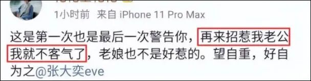 而蒋凡的妻子董花花一位全职太太,在得知两人有染时毫不客气的在社交平台直接发文@张大奕,发文的内容也毫不留情面。