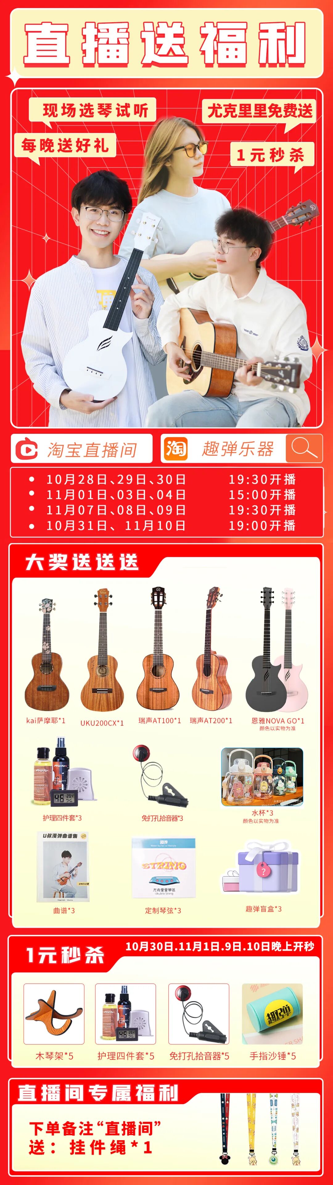 直播送琴、1元秒杀、试听选琴