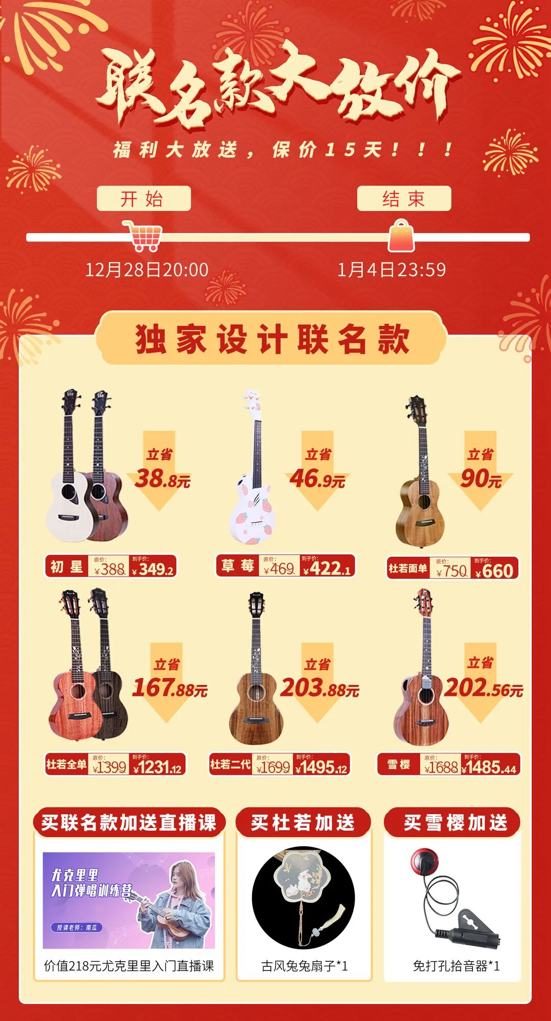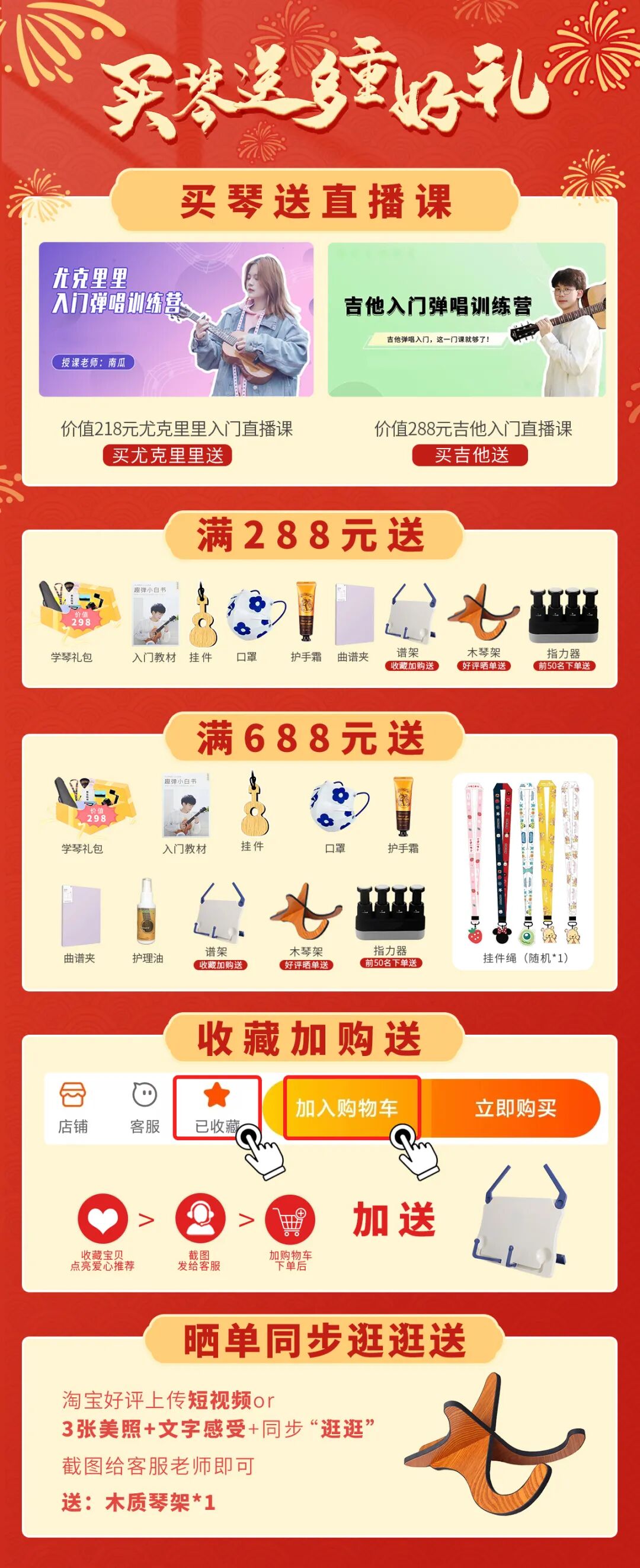 买琴就送直播课,满档加赠好礼!