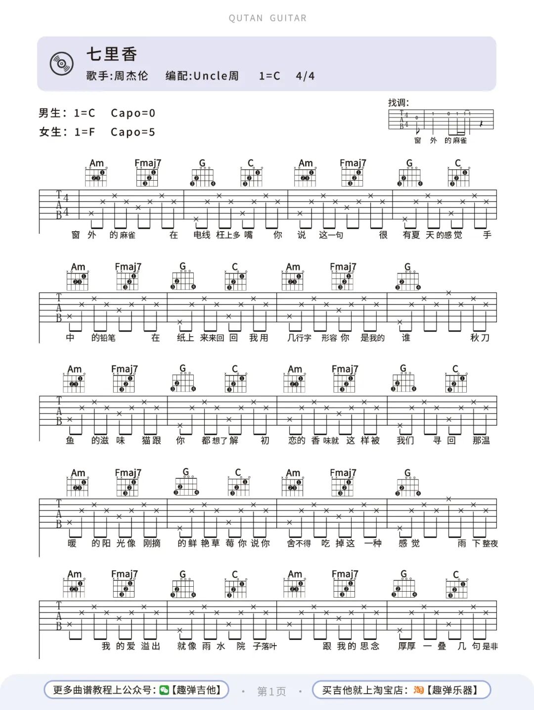 添加微信号:qutan0000,备注“吉他”,进入吉他微信群