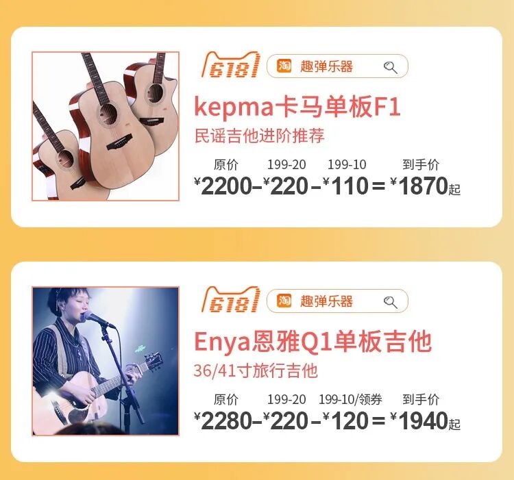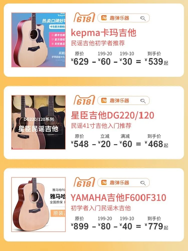 你也可以在:6月16日-18日晚20:00,在淘宝搜索店铺【趣弹乐器】从主页进入直播间,抽奖、唱歌还可以让老师帮你试听吉他挑琴哟!