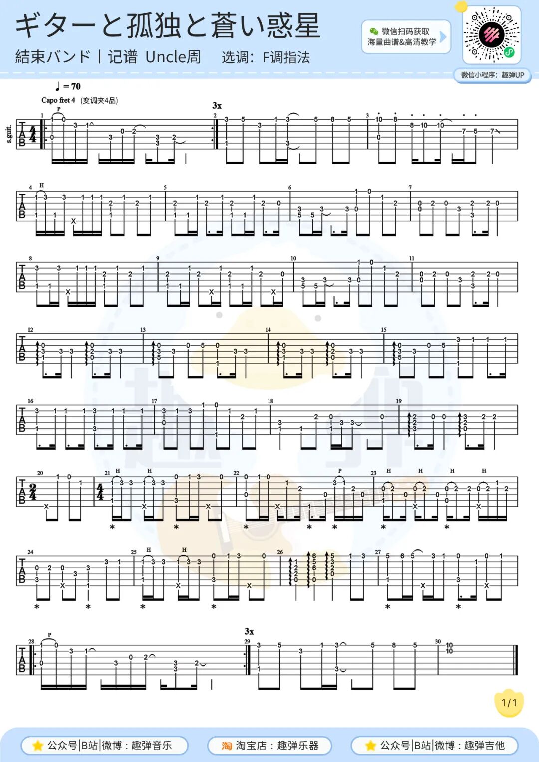 「吉他与孤独与蓝色星球」尤克里里指弹教学和曲谱获取