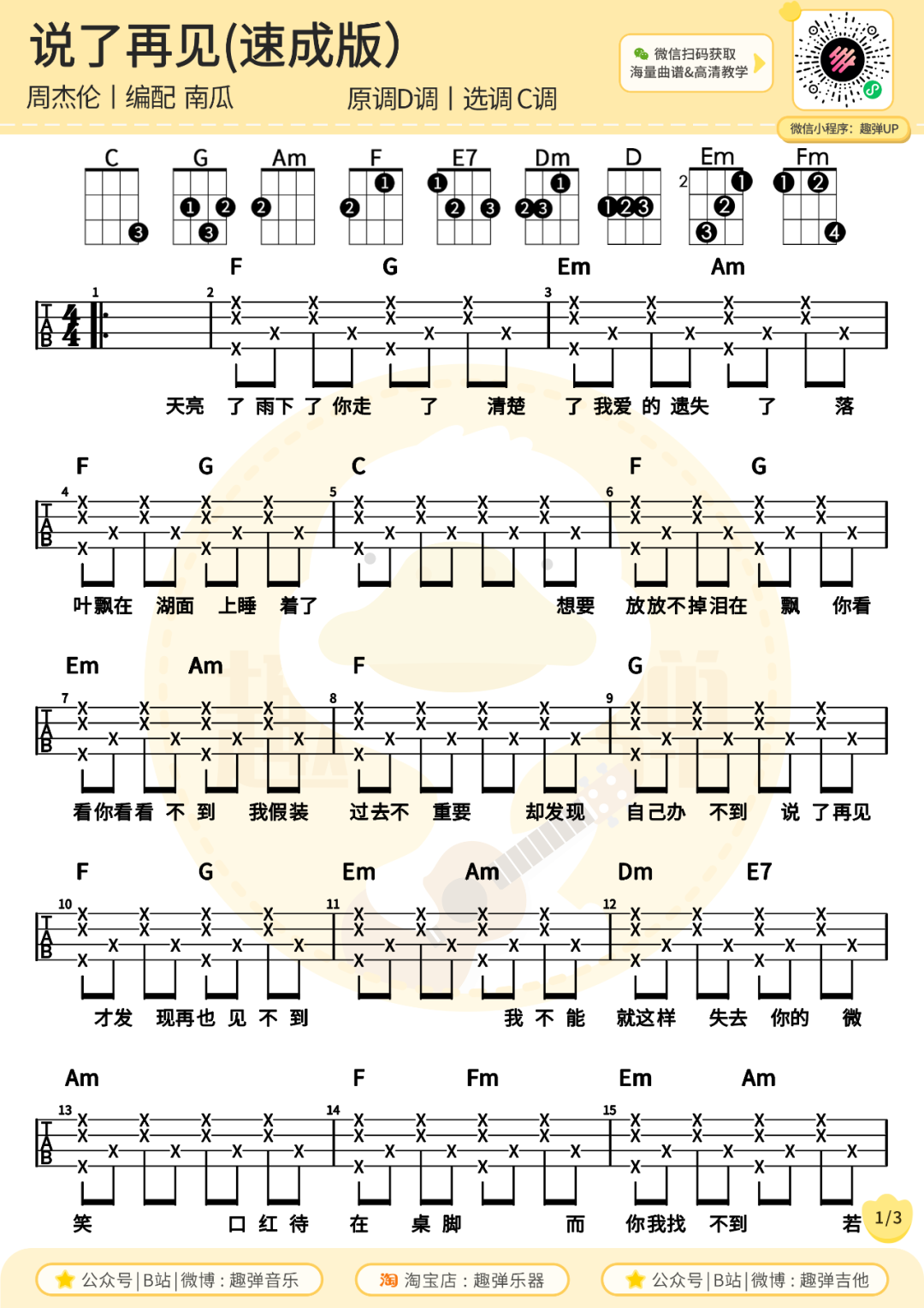 尤克里里弹唱曲谱