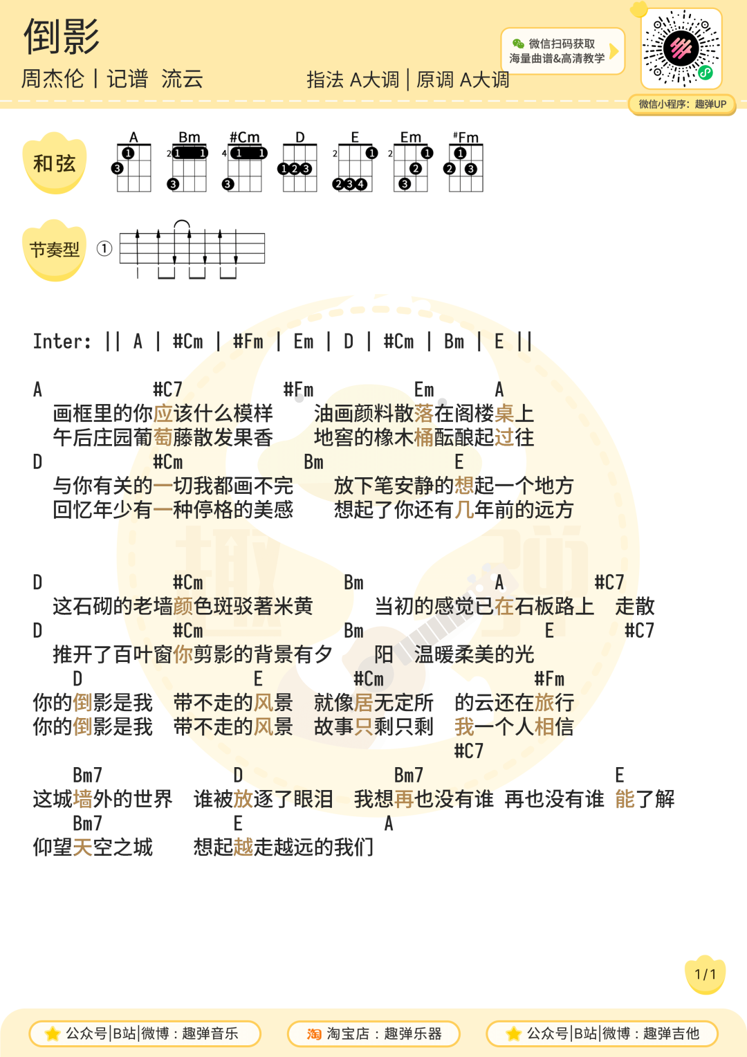 尤克里里弹唱曲谱