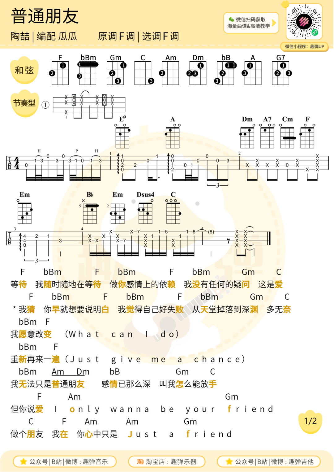 尤克里里弹唱曲谱