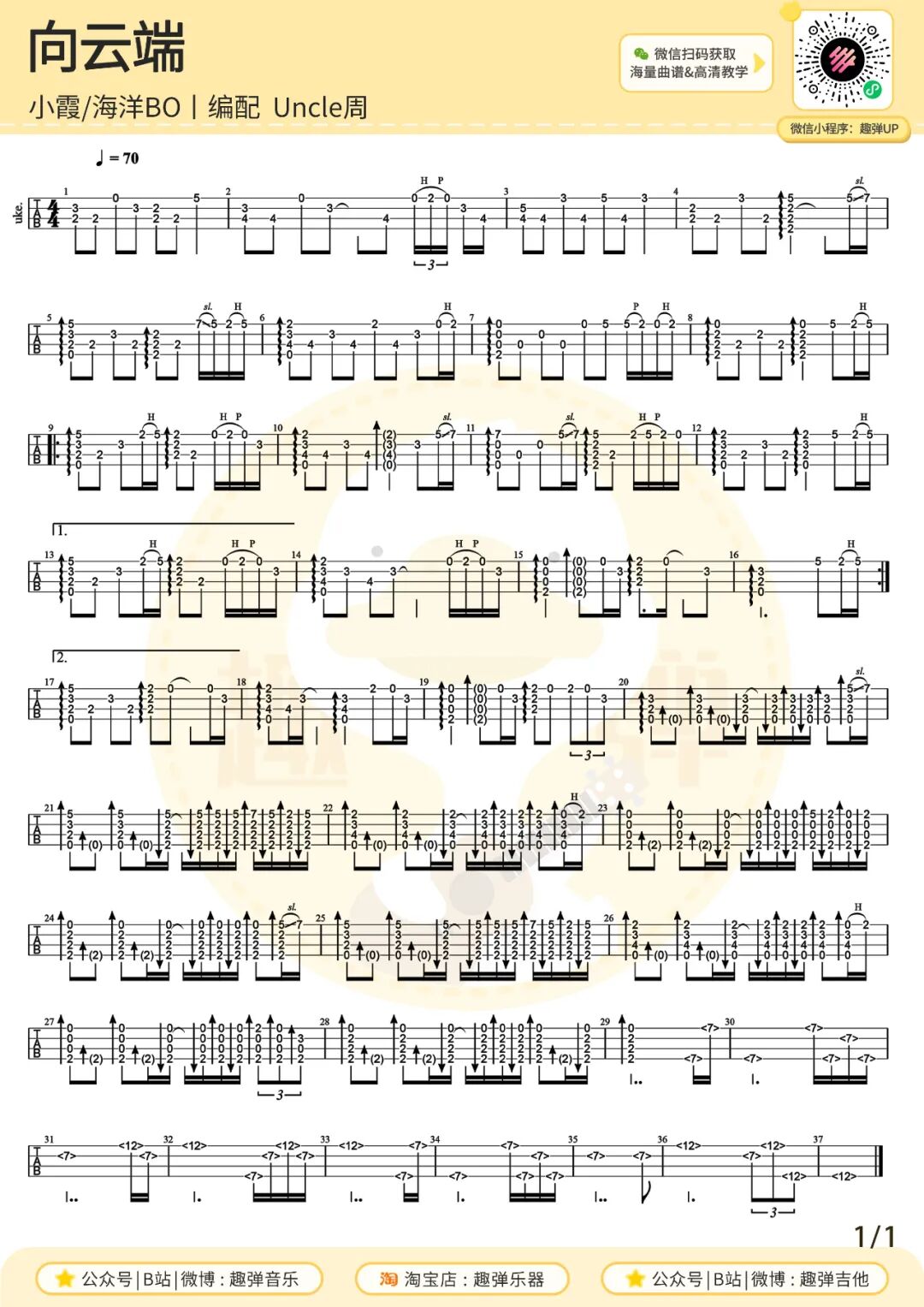 尤克里里指弹曲谱