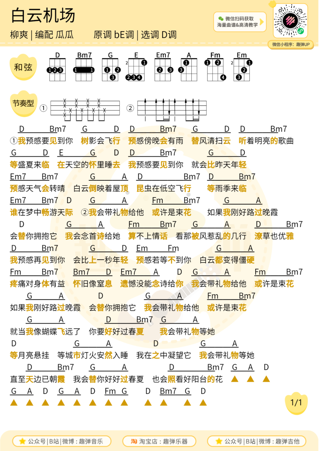尤克里里弹唱曲谱