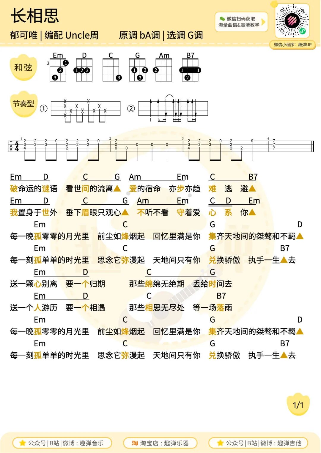 尤克里里&吉他弹唱曲谱