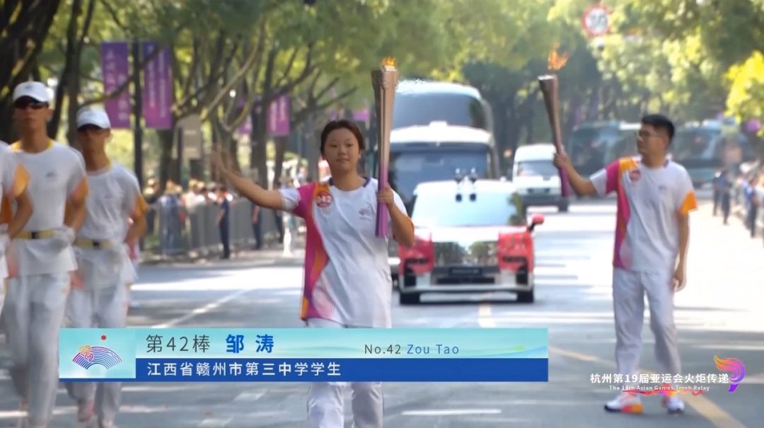 ▲邹涛作为第 42 棒火炬手在绍兴传递杭州亚运火炬