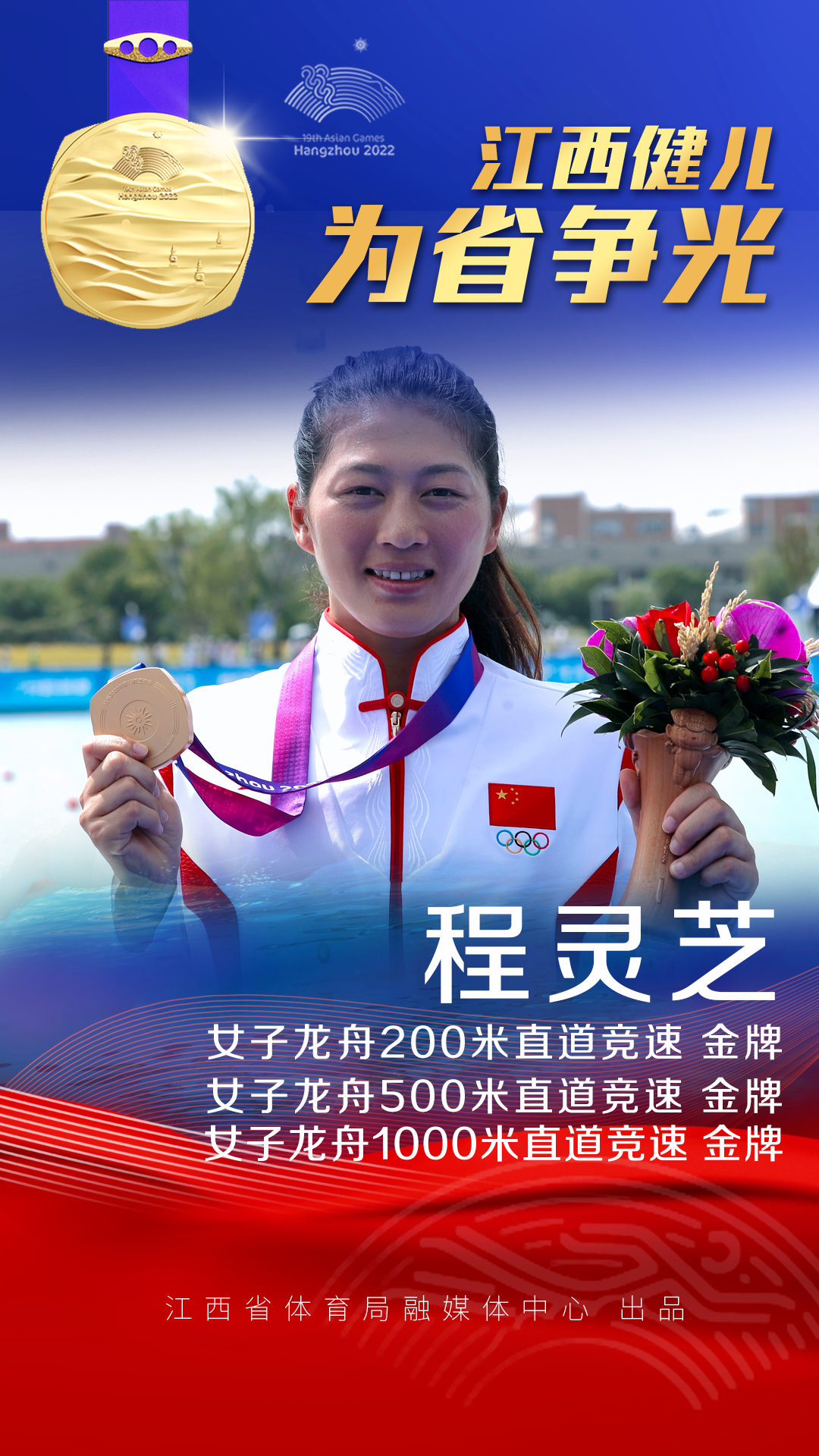 10月4日,女子龙舟200米直道竞速决赛中,江西运动员程灵芝与队友配合默契、奋楫争先,勇夺该项目金牌。10月5日,在女子龙舟500米直道竞速决赛中,江西运动员程灵芝与队友再度夺得该项目金牌。10月6日,程灵芝携手队友再次摘得女子龙舟1000米直道竞速冠军,获得一枚金牌。