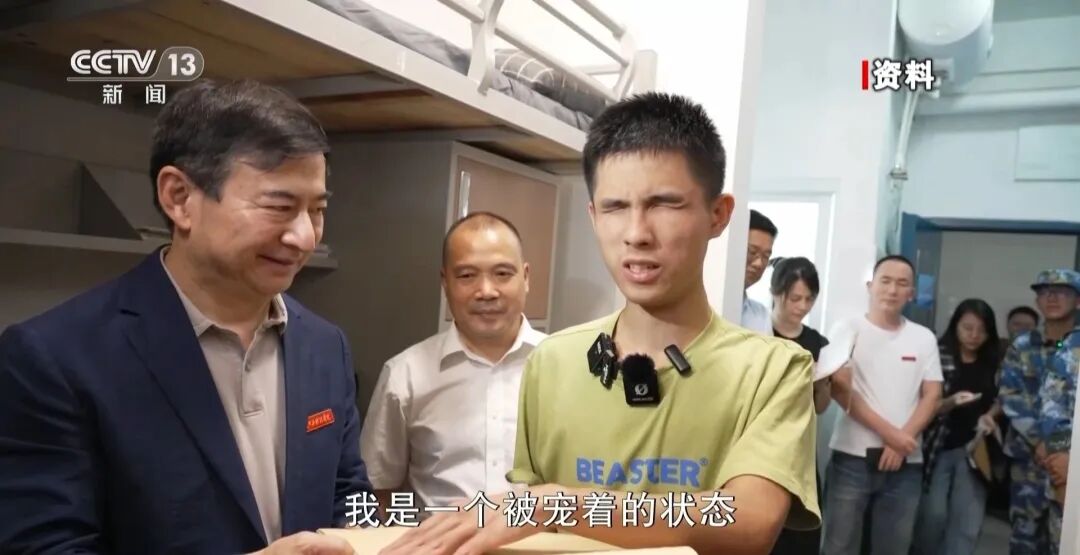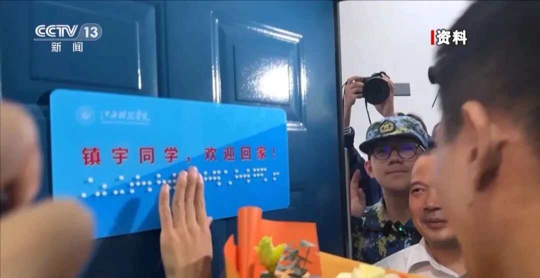 黄镇宇:我是一个被宠着的状态,学校做了好多事情,尤其是几个熟悉的场景。在宿舍里面,竟然有一个大门牌,虽然说那个门牌上的盲文点,可能是放大了好几倍那种,我差点没摸出来,但是真是非常用心,整个宿舍其实也跟其他宿舍不一样,护栏会加一层。