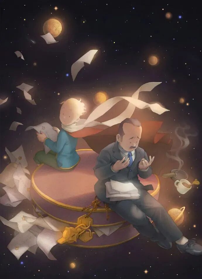 遇见了商人,他说,“我拥有五千颗星星,因此我是一个富有的人。”
