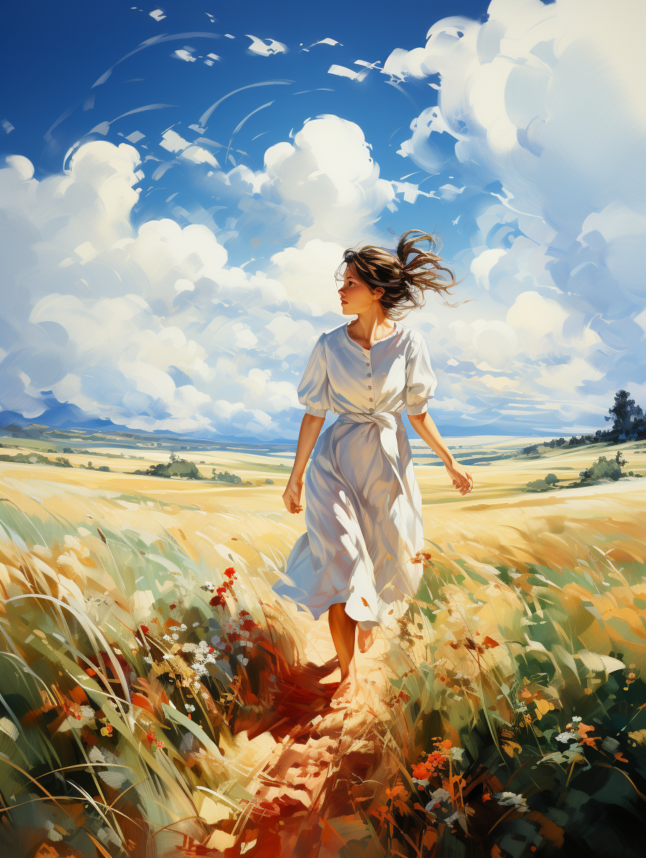 “百里花香,星光灿烂,大地宁静地安睡,她像一道闪电,像一阵旋风,像一个精灵朝着三圣玛利飞去。