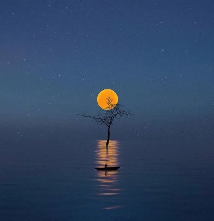 今夜,月亮进入无限慵懒的梦中,