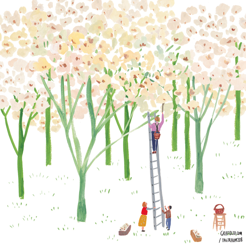 然而繁闹的果园在后面呈现