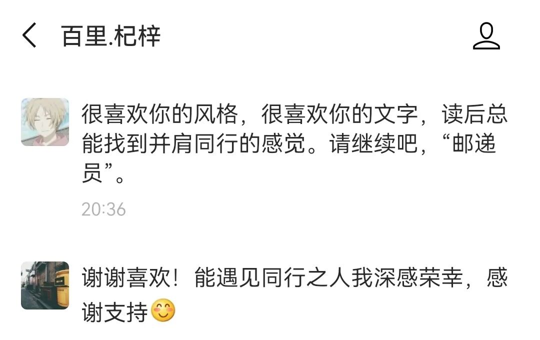 或许这三三两两的安慰和诉诸,不仅是他们的倾心畅谈,也是公号的本心,也是我一遍又一遍记录的意义。我会慢慢地记录所有的留言,记得很久之前,我也曾在微博上给一些喜欢的博主抱怨一些不如意的生活或者投稿,那时候喜欢读文字,看着点赞人数的巨多,我从来没想过会得到博主的回应,当然要说没有期待是不可能的。但我等了很久也真的没有回应。虽然这个小故事很普遍也很正常,留言太多博主也回复不过来,但对于当时异常难过的我来说,难免会有些失落。所以我想着在我记录自己之时,在我力所能及的范围内,能帮助一些人也是一件极好的事。