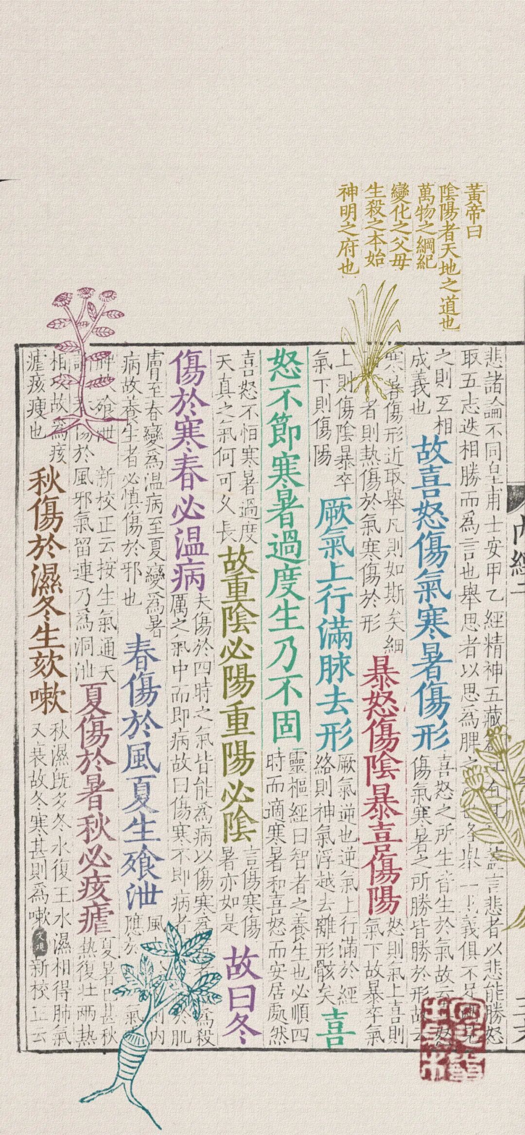 故喜怒伤气,寒暑伤形。暴怒伤阴,暴喜伤阳。厥气上行,满脉去形。喜怒不节,寒暑过度,生乃不固。故重阴必阳,重阳必阴。