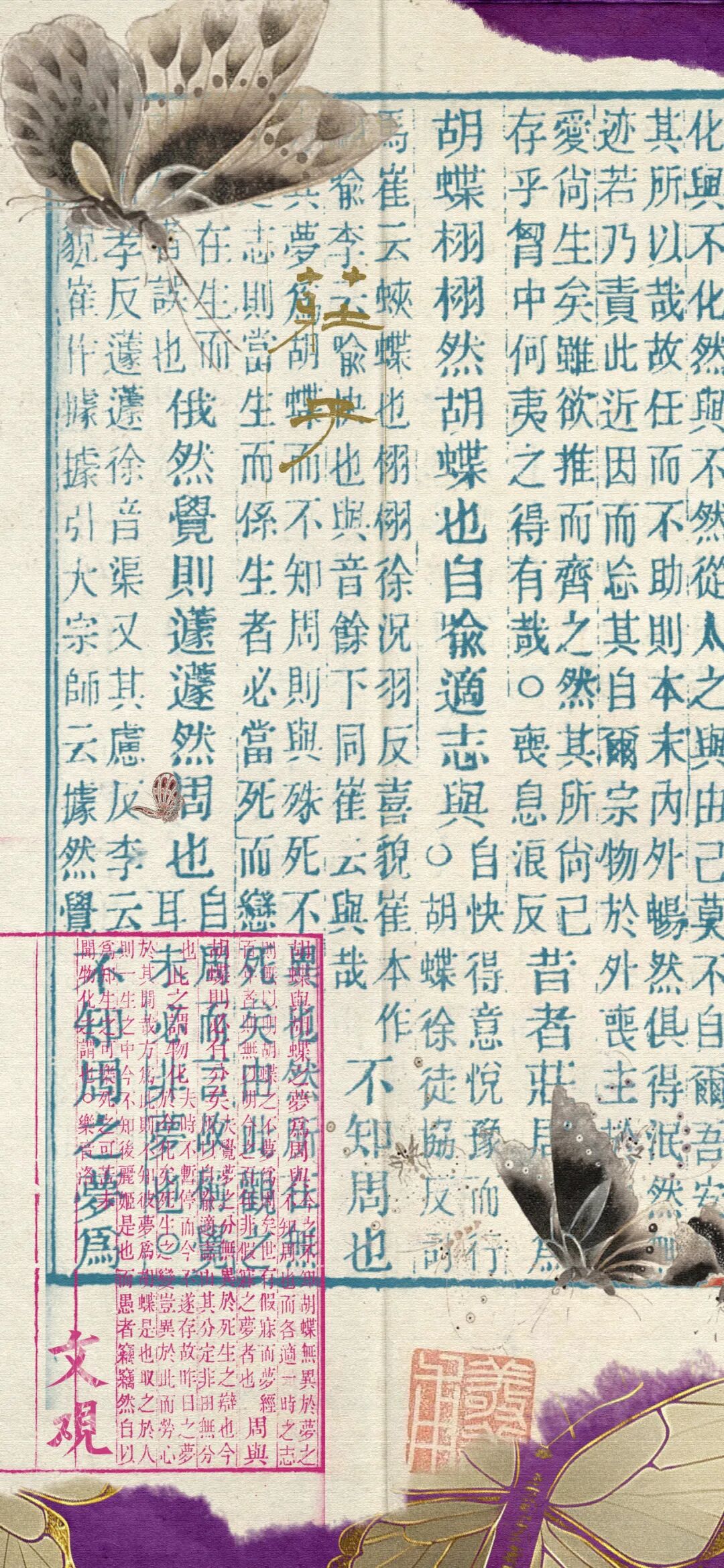 “昔者庄周梦为胡蝶,栩栩然胡蝶也,自喻适志与,不知周也。俄然觉,则蘧蘧然周也。不知周之梦为胡蝶与,胡蝶之梦为周与?周与胡蝶,则必有分矣。此之谓物化。”