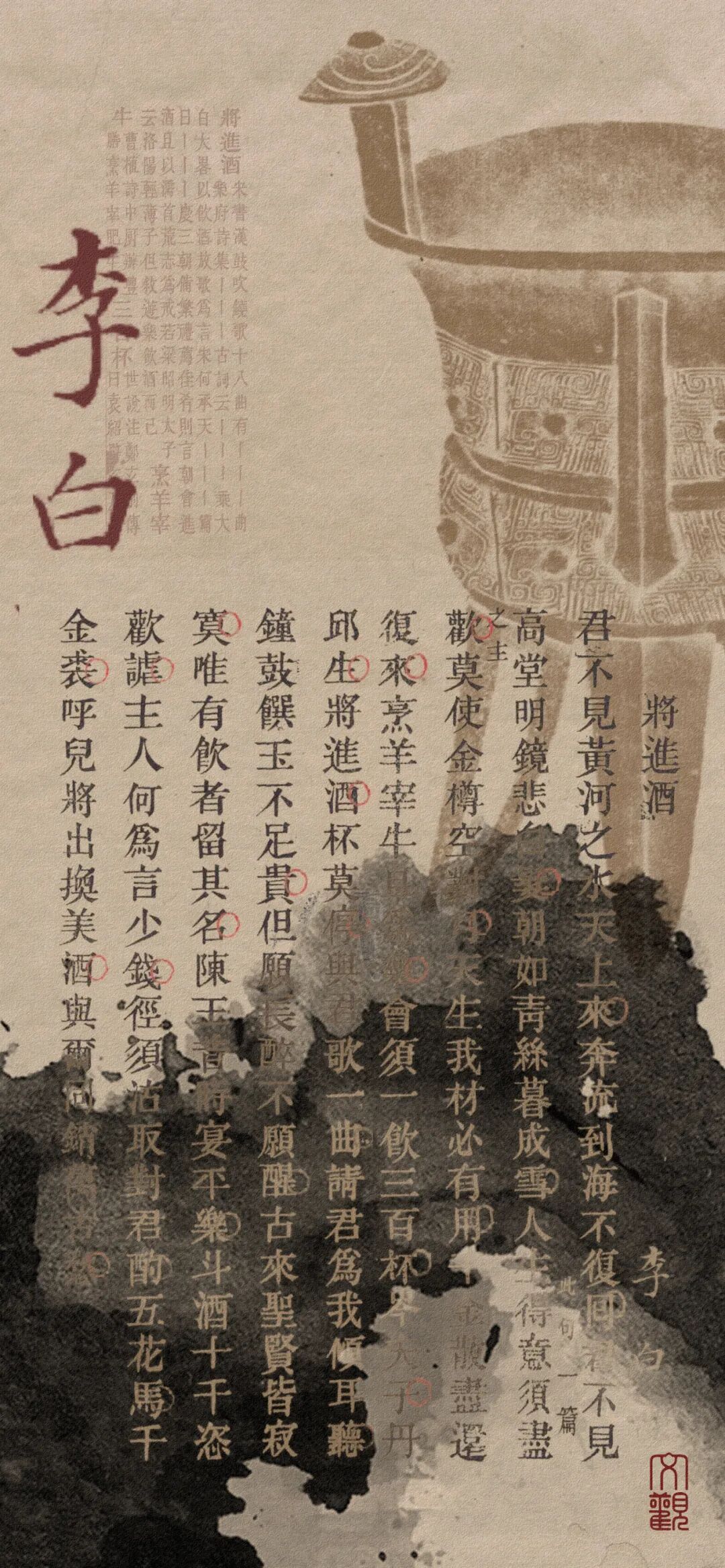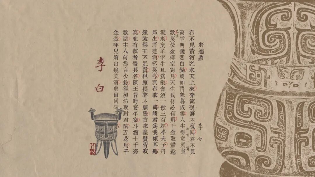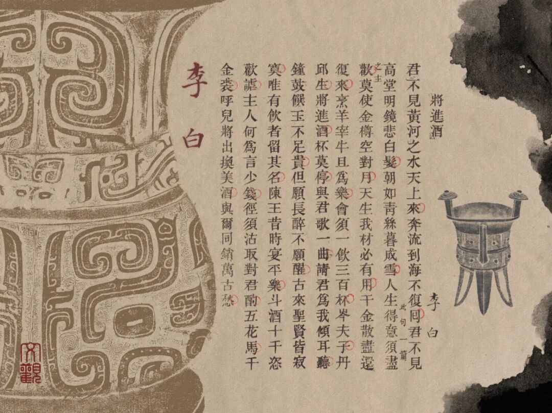 《将进酒》一诗,可以看作李白人生的写照。也有人称《将进酒》是李白诗歌艺术的颠峰之作。
